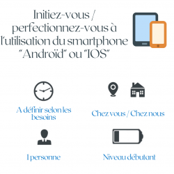 Vous pensez ne pas maitriser votre smartphone? Découvrez comment utiliser votre smartphone de manière quotidienne et découvrir ses différentes fonctionnalités et possibilités. Nous vous expliquerons comment devenir autonome et l'utiliser quotidiennement sans difficulté en vous proposant un accompagnement au plus proche de votre réalité en fonction de vos besoins, vos envies voire vos difficultés.